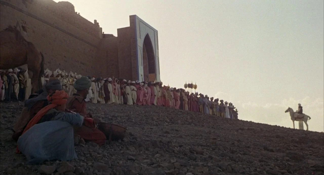 The final film in Pasolini’s Trilogy of Life, Arabian Nights is distinct from the others, both because of its source material, itself divorced from the western Medieval tradition, and its unique aesthetic. Pasolini combines many of his long-standing thematic instruments: Myth, the aesthetics of Third World, precapitalist society, and laissez-faire sex. Arabian Nights is bigger, more colorful, and more sprawling than any of Pasolini’s other films. It is necessarily episodic (that comes from the text), but instead of shoring the fault lines, Pasolini embellishes them. The “protagonist” is absent for much of the middle of the film—his journey is repeatedly derailed by the appearance of new characters and locations.