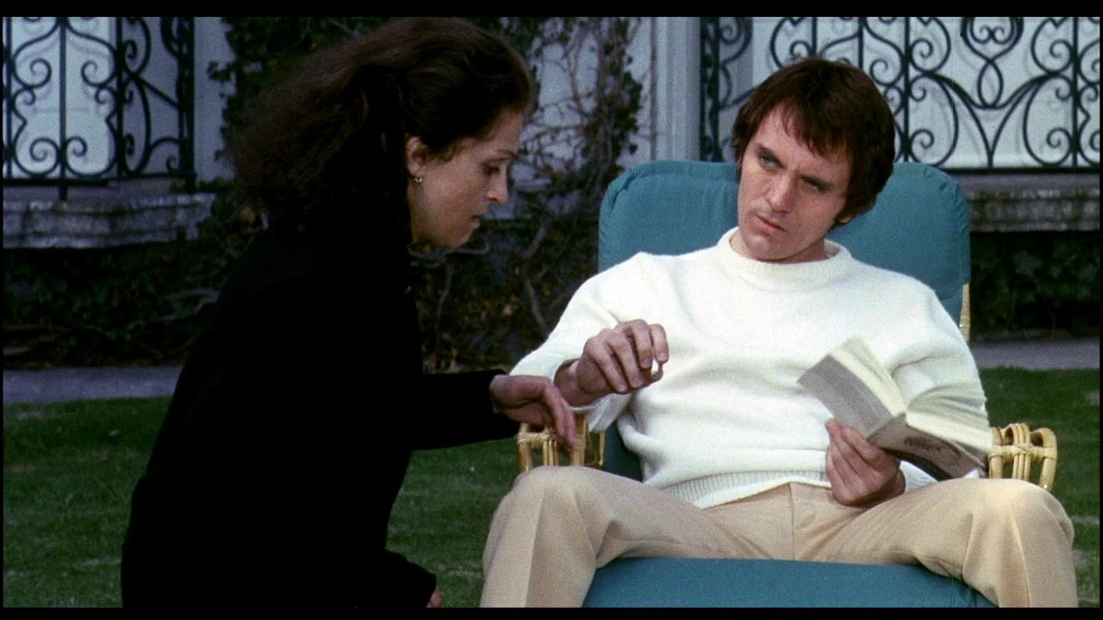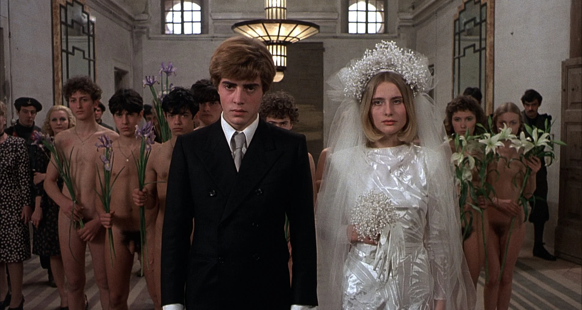 Teorema is overtly allegorical: In it, a mysterious visitor (Terrence Stamp) arrives in a Milanese bourgeois household and seduces them, one-by-one. His presence upsets the social and economic relations between the members of the family (and their maid), and upon his abrupt departure, they each spiral out of control. The film seems designed to articulate the profound emptiness of the bourgeois class, that the control they exercise is really a phantom. The Visitor is not a specific or identifiable figure; rather, he represents both a kind of taboo eros and a calculating social observer.
